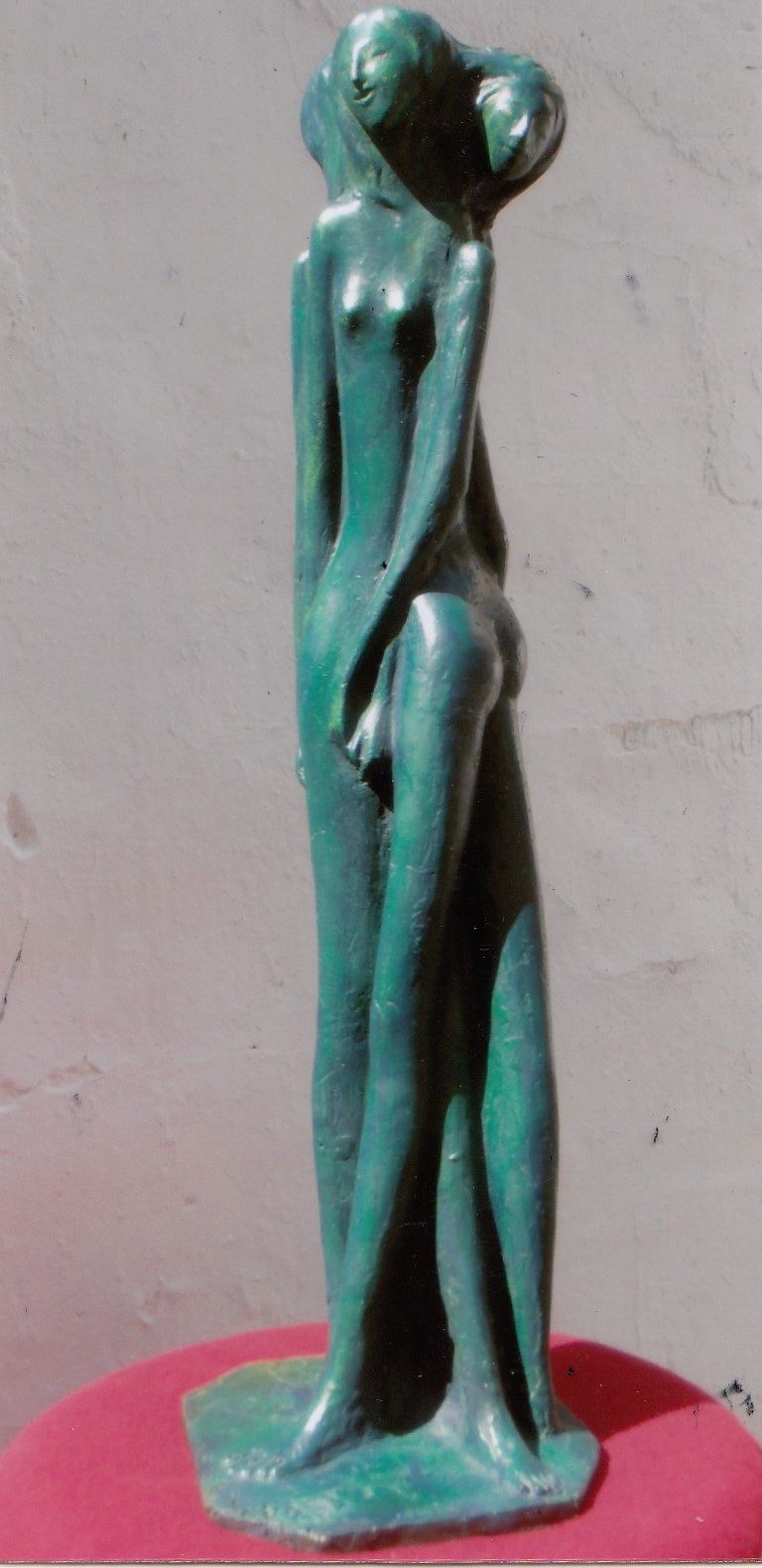 D'un réalisme presque académique, ou au contraire stylisées comme quelque idole celte, ses femmes s'offrent nues aux caresses de l'oeil sans jamais d'indécence. Charnelles, sensuelles, impudiques et pourtant chastes. Femme-phares, aux paupières closes, mais éclairées d'une lumière intérieure qui transcende la simple exhibition de la chair. Longilignes, elles se dressent à l'extrême limite de l'envol, paraissant désireuses de rejoindre leurs frères oiseaux dont elles ont la grâce légère. Ou à l'opposé, repliées sur elles-mêmes, massives et trapues comme ces déesses antiques gardiennes des sources et des forêts, elles irradient par la densité de leur simple présence. Parfois aussi, avec une souplesse élastique, elles marchent vers nous, tendues et triomphantes, près de l'homme déjà soumis à leur pouvoir magique. On entre au coeur de la femme mythique pour découvrir un temps de paix et d’harmonie.